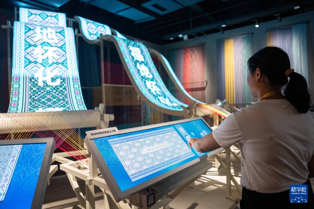 9月16日,在湖南省怀化市五溪非遗园,游客在体验数字化织锦。
